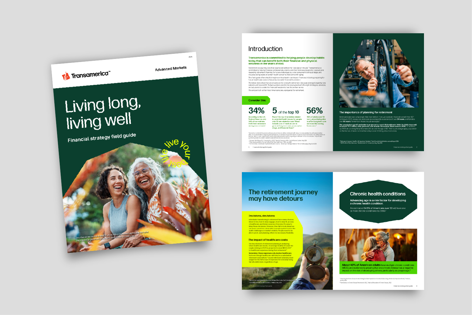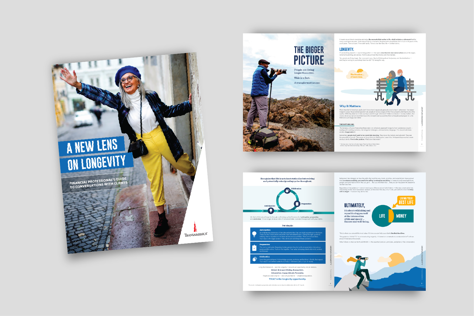 12-page thought leadership brochure on the topic of longevity, including illustrations and infographics.